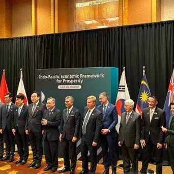 2022年5月,美国宣布启动“印太经济框架”,对抗中国地区影响力。成员国具体包括美国、澳大利亚、文莱、斐济、印度、印度尼西亚、日本、韩国、马来西亚、新西兰、菲律宾、新加坡、泰国和越南。“印太经济框架”共有四个支柱,即供应链协议、清洁经济协议、公平经济协议,以及贸易协议。